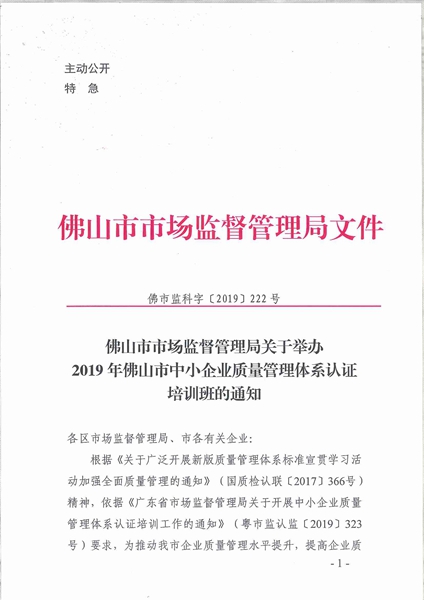 365BET体育下载_英国365客服_Best365官网登录市场监督管理局关于举办2019年365BET体育下载_英国365客服_Best365官网登录中小企业质量管理体系认证培训班的通知