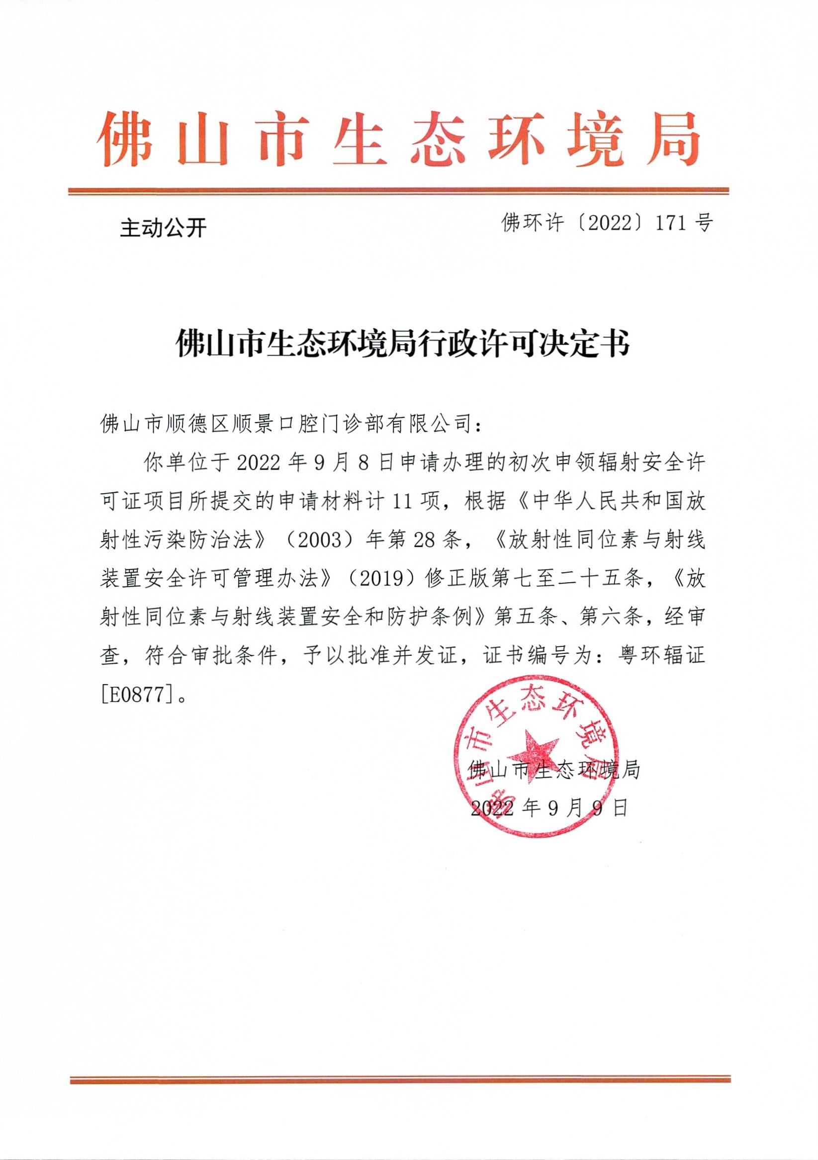 附件下载:佛环许〔2022〕171号365BET体育下载_英国365客服_Best365官网登录顺德区顺景口腔门诊部有限公司.jpg