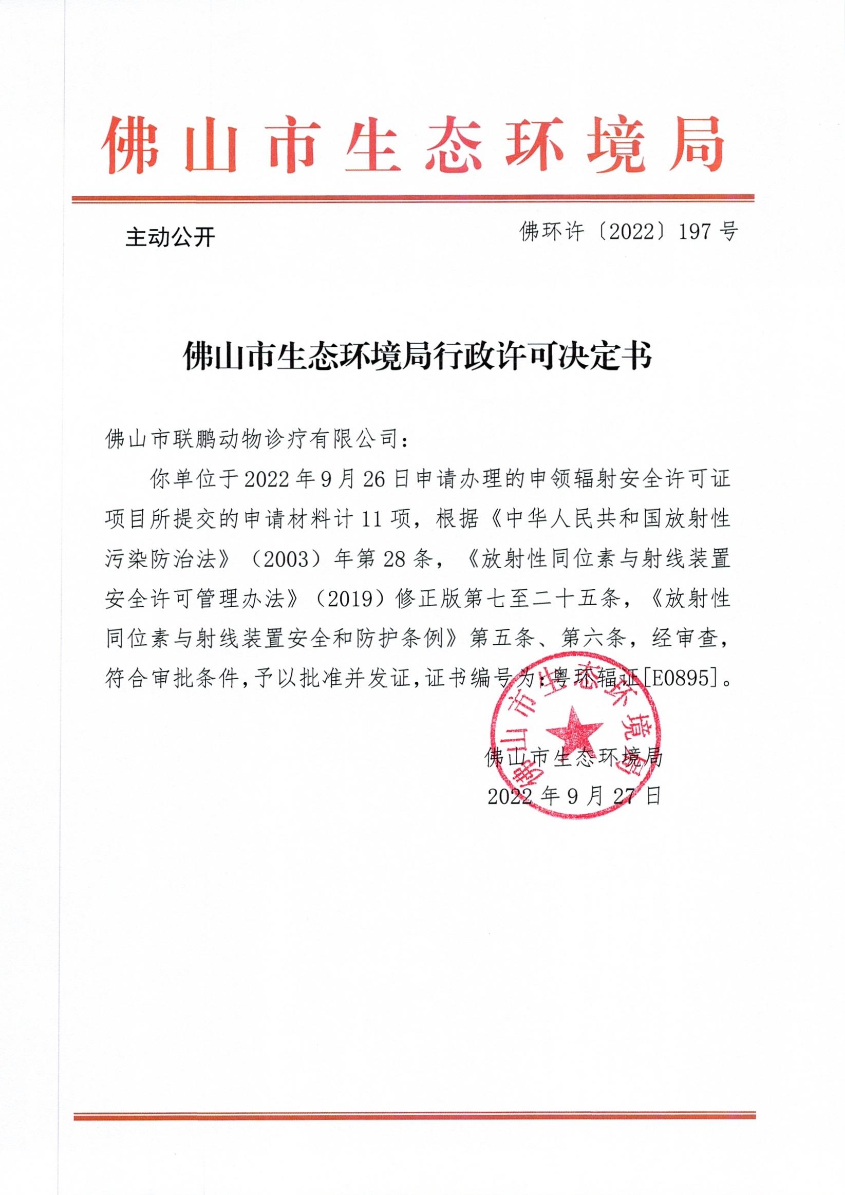 附件下载:佛环许〔2022〕197号365BET体育下载_英国365客服_Best365官网登录联鹏动物诊疗有限公司.jpg