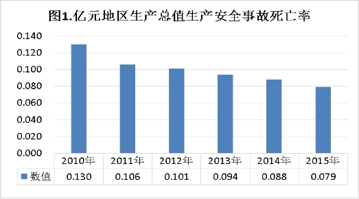 2.单位国内生产总值(GDP)死亡率较大幅度下降。“十二五”期间我市国内生产总值逐年上升,而事故死亡率逐年下降。2015年与2010年相比,单位国内生产总值(GDP)死亡率下降39.23%。