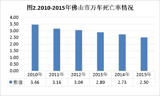 3.道路交通万车死亡率平稳下降。“十二五”期间我市机动车数量逐年增加,而道路交通万车死亡率呈逐年平稳下降趋势,2015年与2010年相比,死亡率下降27.74%。